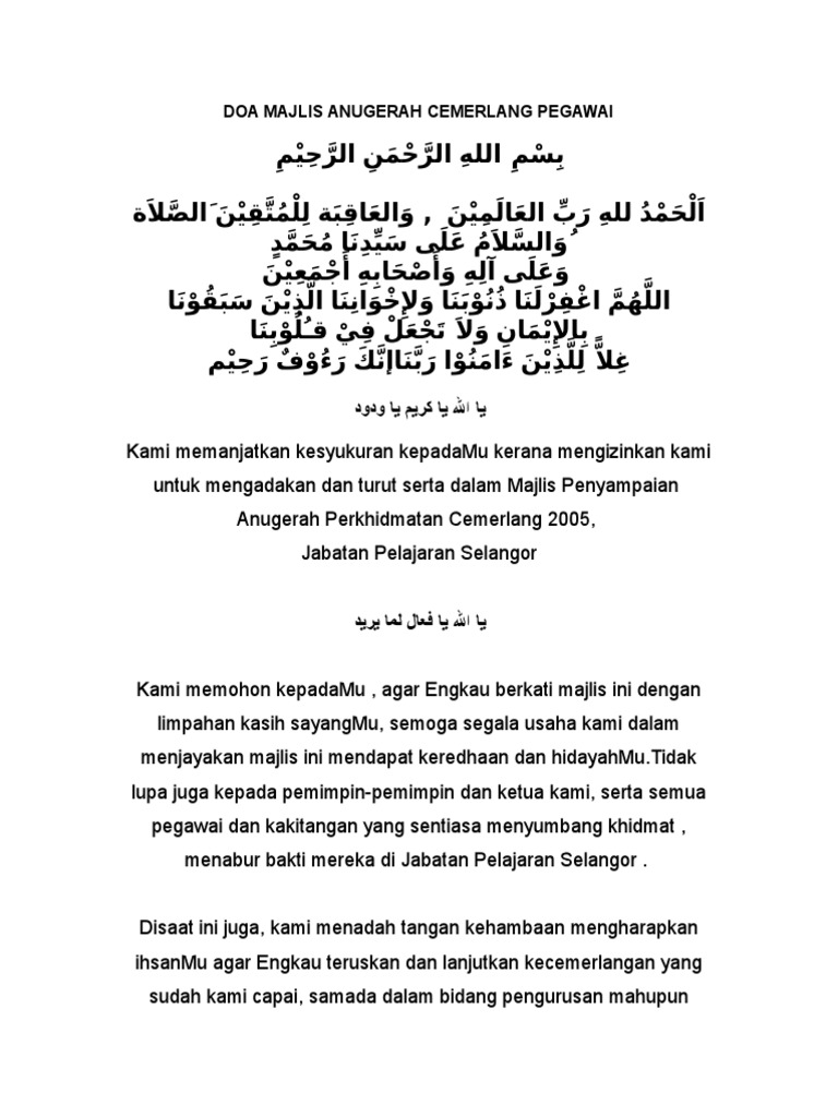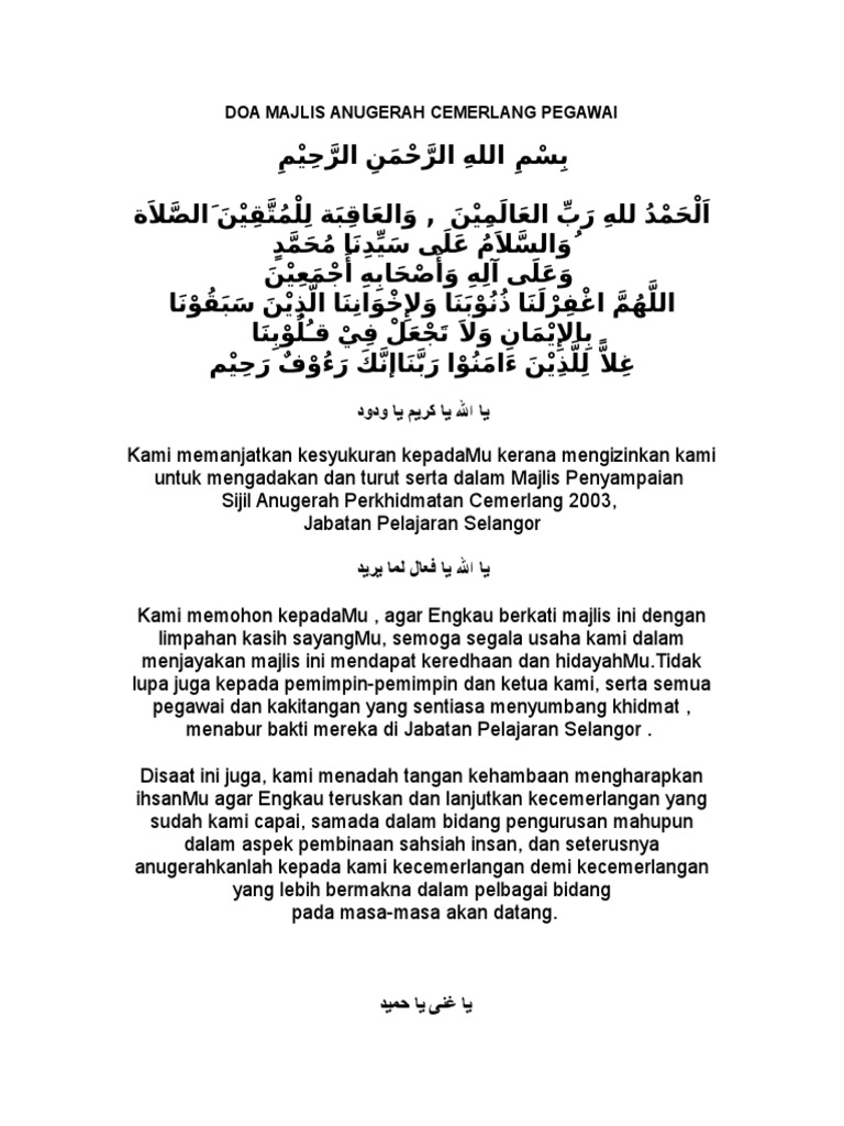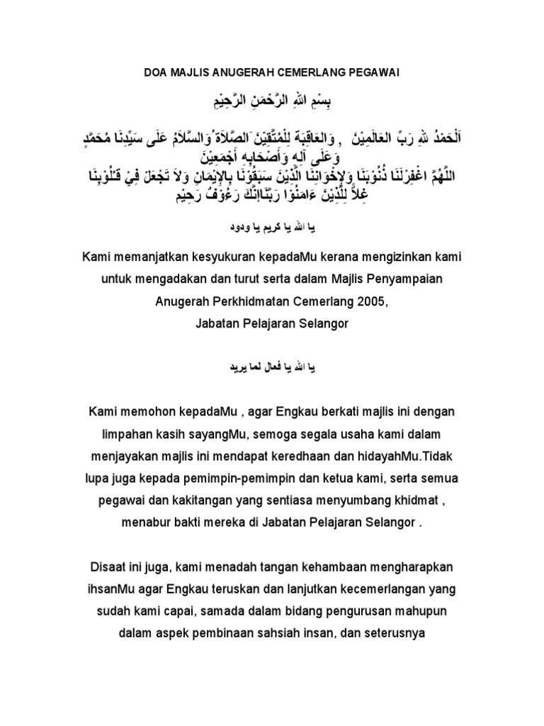 Doa Anugerah Perkhidmatan Cemerlang1 Pdf