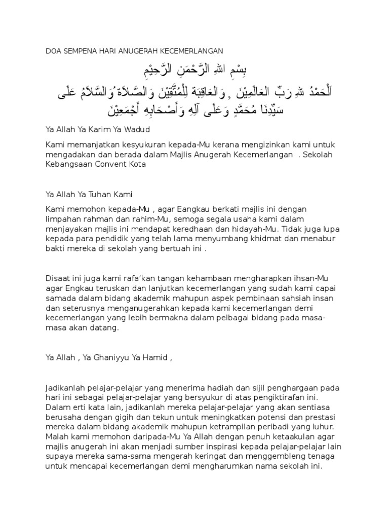 Teks Doa Hari Anugerah Kecemerlangan Pdf