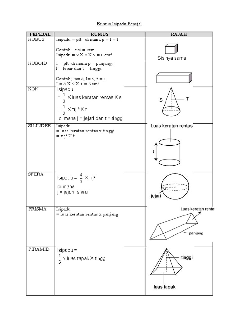 Rumus Luas Dan Isipadu Bentuk Geometri Pdf